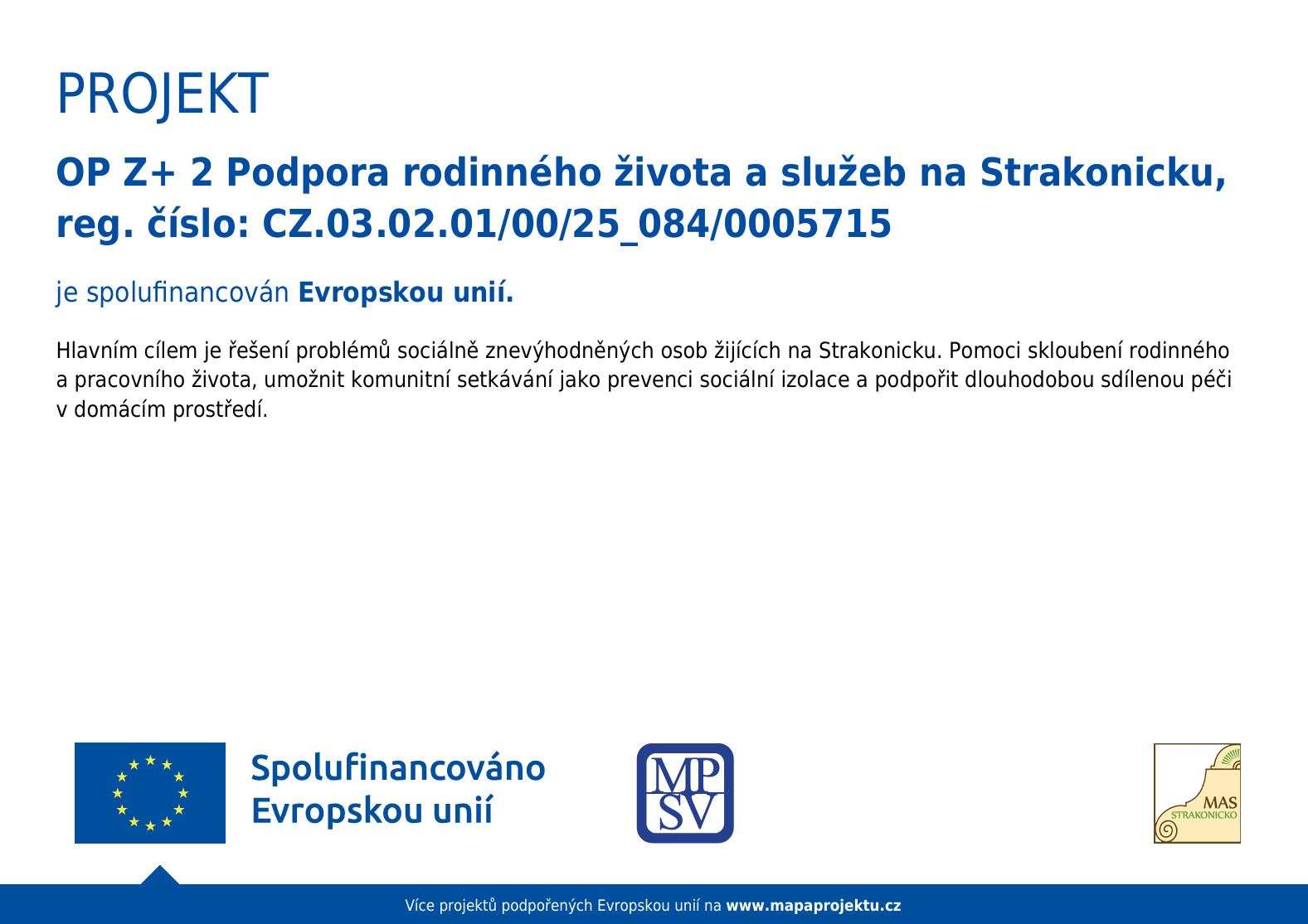 Název projektu: OP Z+ 2 Podpora rodinného života a služeb na Strakonicku